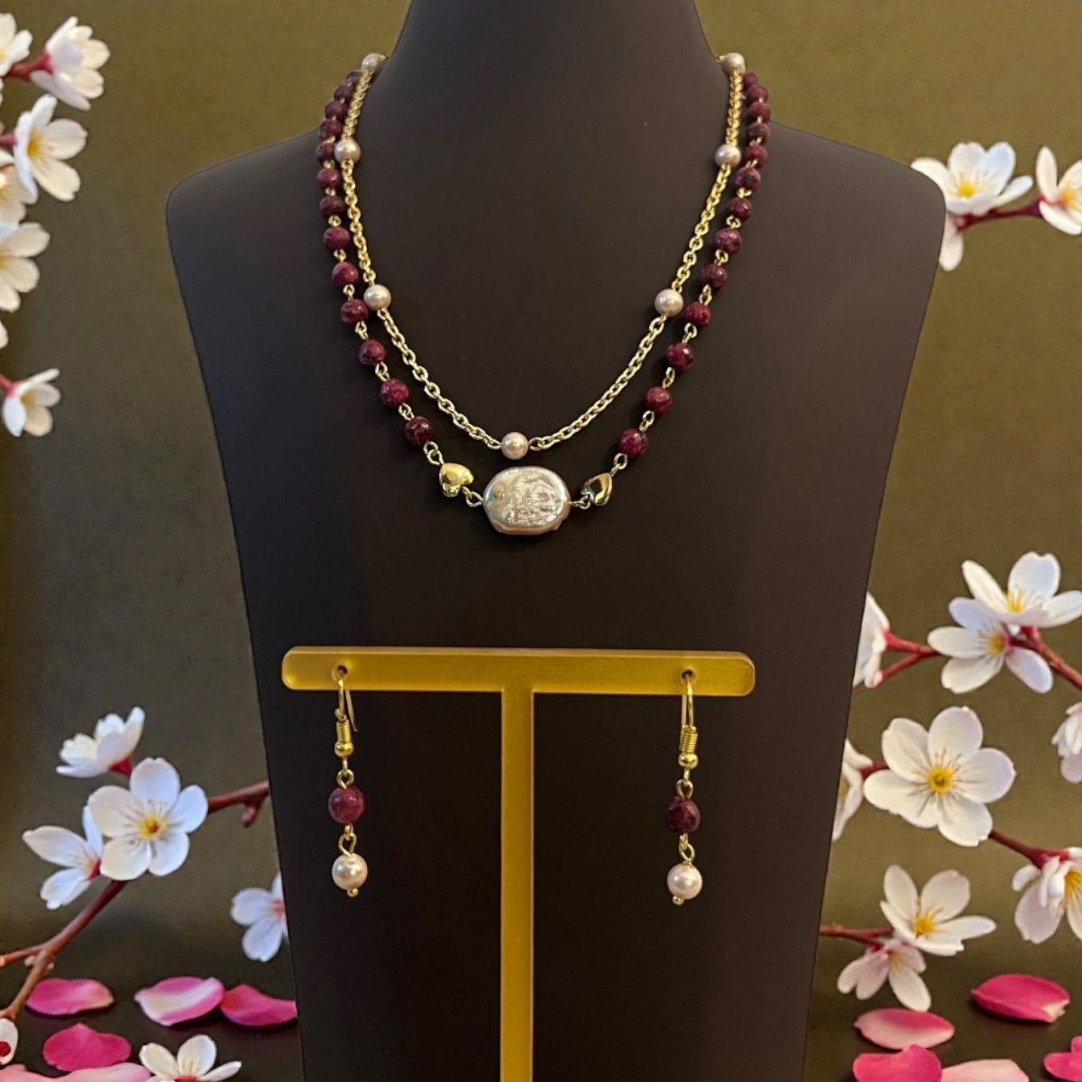Includes necklace with matching earrings.